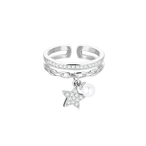 Découvrez notre bague pendentif chaîne étoile, un bijou représentant une ode à l'éclat céleste. L'étoile, finement ouvragée, balance délicatement au bout de sa chaîne, faisant miroiter son éclat à chaque mouvement, rappelant la beauté scintillante du ciel nocturne. Portez cette bague pour apporter finesse et brillance à vos doigts.