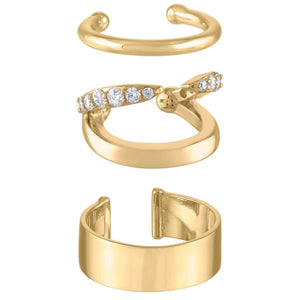 Ces trois bagues d'oreille sans perçage sont des basiques à avoir si vous êtes à la recherche de faux piercing. Leur taille ajustable leur permet de s'adapter à toutes les formes d'oreilles. N'hésitez plus et offres vous cet ensemble de ear cuff afin de rayonner avec style au quotidien.