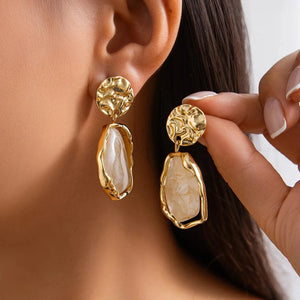 Notre Boucle d'Oreille Pendante Or Pierre marie avec élégance la chaleur de l’or à la pureté naturelle de la pierre. Chaque paire est une œuvre d’art où la lumière dorée se mêle aux reflets uniques des pierres semi-précieuses, créant un équilibre parfait entre éclat et authenticité.