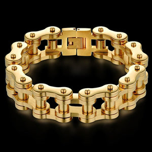 Le bracelet chaîne de moto en or est l'accessoire parfait pour toutes les personnes étant à la recherche d'un bracelet sport, viril et élégant. Avec sa finition plaqué or 18 carats sur de l'acier inoxydable de grande qualité, ce bracelet est très résistant et habillera parfaitement votre poignet.