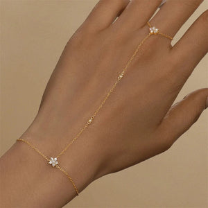 Ce bijou de main en argent incarne l’élégance féminine et la délicatesse intemporelle. Reliant subtilement un bracelet fin à une bague, il épouse la main avec harmonie et capte la lumière à chaque mouvement.