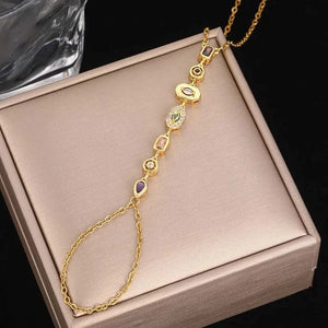 Ce Bracelet Chaine de Main est l’incarnation parfaite de l’élégance subtile et du charme bohème. Reliant avec finesse un bracelet délicat à une bague élégante, il habille la main d’une lumière douce et raffinée, soulignant la beauté naturelle de vos gestes.