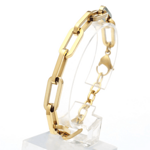 Cette chaîne maillon est raffinée et incontournable. Les maillons rectangles sont très tendance vous assurant un style unique et élégant. La couleur de chaîne dorée ou argentée vous permettra de l'associer en toute occasion avec votre style. Choisissez le modèle que vous préférez et portez fièrement votre nouveau bracelet fin.