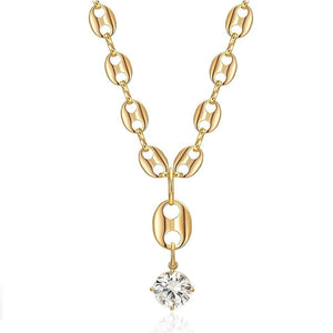 Laissez vous séduire par la magnifique forme de ce collier chaîne graine de café diamant. Sa finition de grande qualité, sa maille tendance et le diamant de zircon éclatant rendent le bijou parfait et unique en son genre. N'hésitez plus et optez pour ce collier chaîne chic, luxueux et élégant afin de compléter tous vos looks.