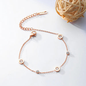 Grâce à sa couleur or rose au reflet éclatant, cette chaîne de cheville or rose apporte une touche de féminité et de légèreté. Sa couleur rose et ses diamants de zirconiums exprime romantisme et sérénité. Portez ce bracelet de pied avec des baskets, ou des pieds nus.