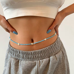 Cette chaîne de taille en perle sera parfaite pour vos vacances. Composée de perles brillantes et de motifs fleurs, cette chaîne de hanche accentuera votre féminité et exprimera votre goût pour les beaux bijoux de corps. Résistante et jolie, cette chaîne de taille pourra être portée à la mer et à la piscine.