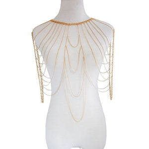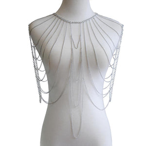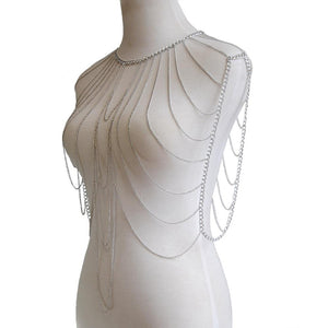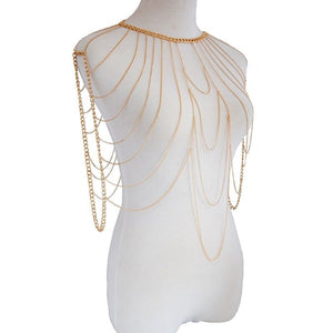 Découvrez notre superbe chaine d'épaule, un bijou de corps parfait pour ajouter féminité et classe à votre tenue. Cette chaine de corps peut être portée en tant que lingerie, sur un bikini ou directement sur votre peau. Très agréable à porter, cet accessoire ajustable mettra votre buste et poitrine en valeur. Associez-le avec un blazer, une robe ou bien sur un soutien-gorge, vous serez la reine de la soirée.
