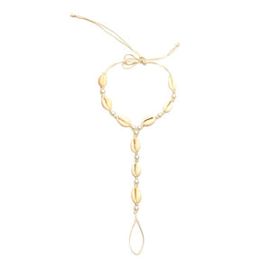 Cette magnifique chaîne de corps est constituée de coquillages authentiques et gracieux. Ce modèle forme un bracelet de cheville tombant en cascade jusqu'à former une bague doigt de pied. Très exotique et estival, cette chaîne cheville coquillage sera parfaite pour vos pieds nus sur la plage.