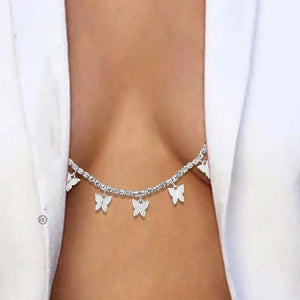 Apportez une touche aérienne et sensuelle à votre style avec la Chaine Poitrine Papillon. Son design délicat met en valeur la silhouette grâce à de fins maillons qui se posent avec grâce sur la peau, sublimés par des pendentifs papillons, symbole de liberté et de féminité. Un bijou qui attire les regards et reflète votre personnalité avec élégance.