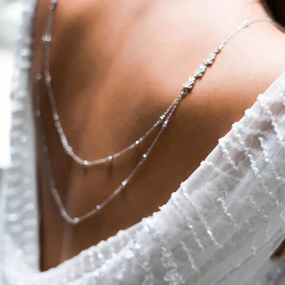 Notre Double Chaîne de Dos est un bijou délicat pensé pour sublimer vos robes et tenues dos-nu. Avec ses deux rangs qui se déploient le long du dos, elle crée un effet raffiné et sensuel, parfait pour attirer les regards avec subtilité. Idéale pour les mariages, les soirées élégantes ou les occasions spéciales, elle incarne l’élégance contemporaine.