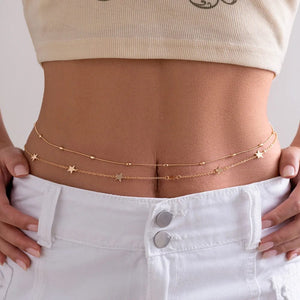 Apportez une touche de magie à votre garde-robe avec notre Double Chaîne de Ventre Étoile, un accessoire enchanteur conçu pour captiver les regards. Cette chaîne de ventre unique se compose de deux rangées délicates, chacune ornée d'étoiles brillantes qui ajoutent un éclat céleste à votre tenue. Idéale à porter lors d'occasions spéciales ou pour illuminer votre look quotidien, elle est parfaite pour celles qui aspirent à un style à la fois raffiné et inspirant.