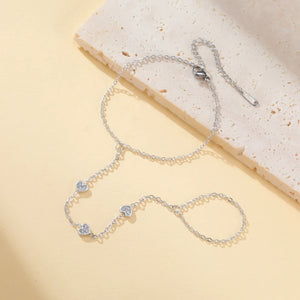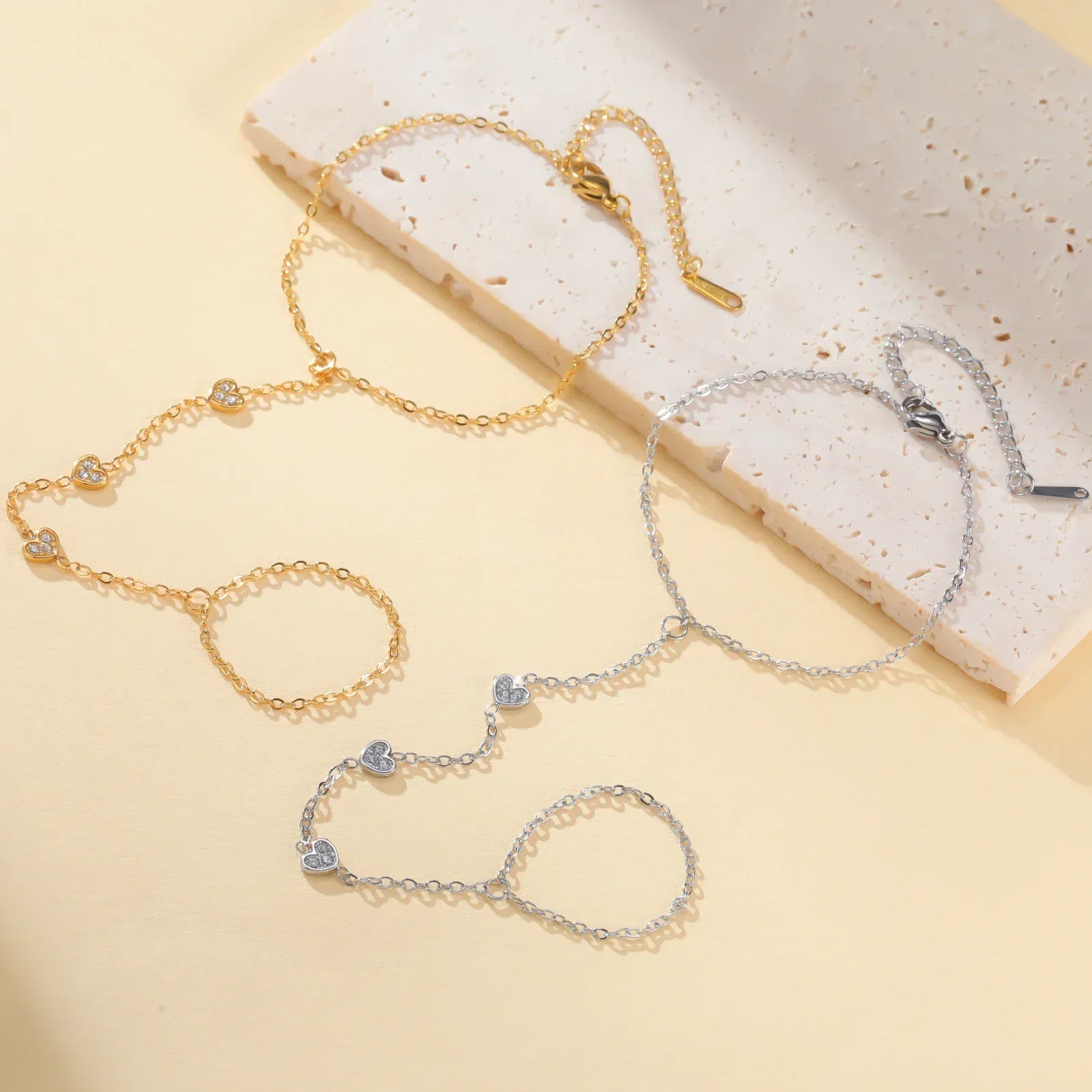 Notre Bijou de Main Coeur est bien plus qu’un simple accessoire : c’est une déclaration d’amour portée avec élégance. Ce bracelet relié à une bague par une fine chaîne met en valeur un délicat motif cœur au centre de la main, créant un effet à la fois romantique et tendance.