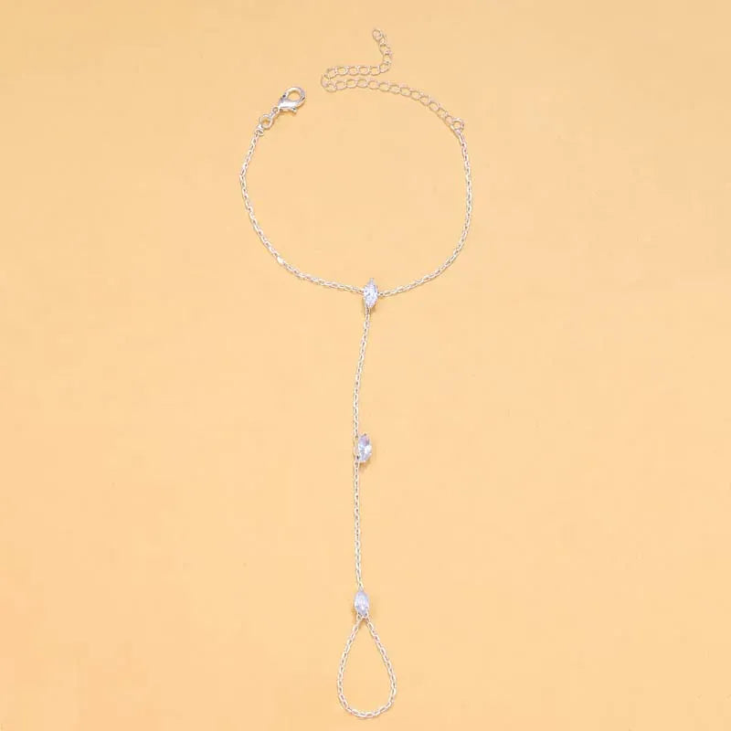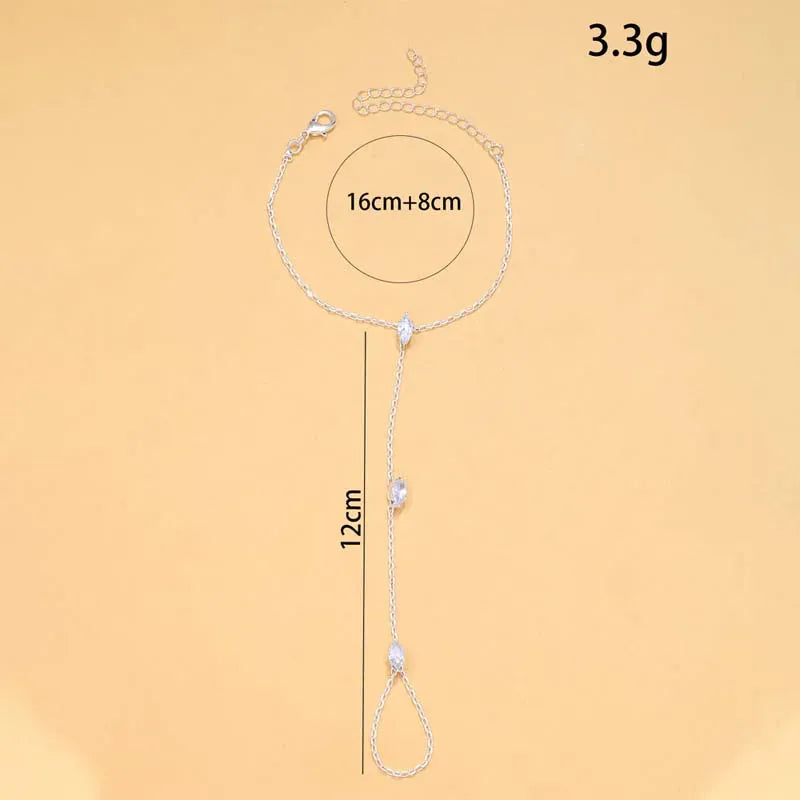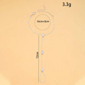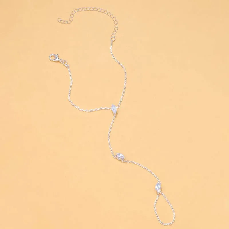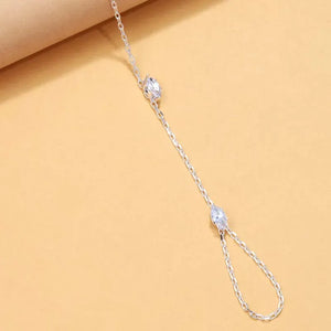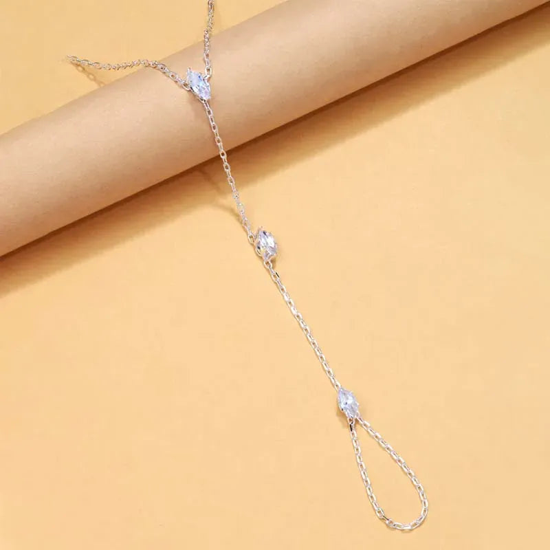 Notre Chaine de Main Cristaux est l’accessoire parfait pour celles qui aiment briller avec élégance. Délicatement posée sur le dos de la main, elle relie un bracelet raffiné à une bague fine grâce à une chaîne ornée de cristaux scintillants.