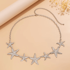 Affichez votre amour pour l'été et la mer avec cette Chaine de Hanche Etoile de Mer, un bijou de ventre raffiné et tendance qui sublime votre silhouette avec sensualité et élégance. Ornée de pendentifs en forme d’étoile de mer, symbole de liberté et de féminité, elle apporte une touche marine irrésistible à vos tenues de plage et vos soirées d'été.