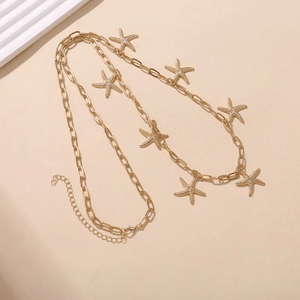 Plongez dans l’ambiance de l’été avec cette Chaine de Hanches Etoile de Mer, un bijou de corps aussi solaire que délicat. Disponible en couleur dorée ou argentée, cette chaîne de ventre est parsemée de multiples petits pendentifs en forme d’étoile de mer qui danseront à chaque mouvement.