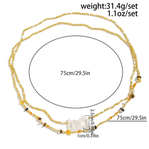 Avec ses deux rangs dorés et ses perles aux tons bruns, cette Chaine de Ventre Double Perles représente la parfaite alliance entre naturel et sophistication. Elle sublimera votre taille avec une touche bohème chic qui rappelle la terre, le sable chaud et la lumière dorée du soleil. Un bijou de corps délicat à porter seul ou en accumulation pour un effet chic et féminin, aussi bien sur la plage qu’en ville.
