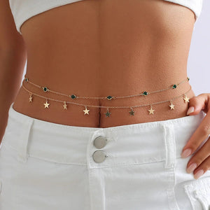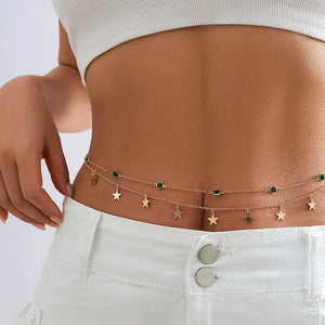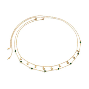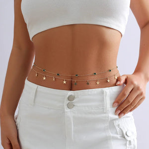Illuminez votre silhouette avec notre Chaîne de Ventre Étoile Vert. Cette chaîne de corps unique arbore des pendentifs verts éclatants, ajoutant une touche de glamour et d'élégance à votre look. Que ce soit pour une soirée spéciale ou une journée ordinaire, cette chaîne de taille captivera tous les regards. Portez cette chaîne avec fierté pour affirmer votre amour pour le monde naturel.