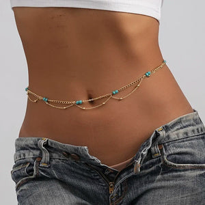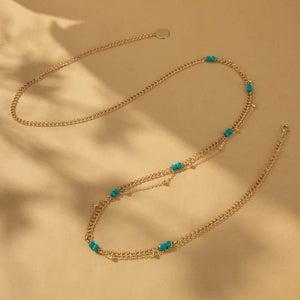 Mettez en valeur votre taille avec notre Chaine de Ventre Or Bleu. Cette chaine de corps combine l'éclat du doré avec la splendeur du bleu, ajoutant une touche de luxe à votre style. Que ce soit pour une soirée chic ou une journée ensoleillée, cette chaîne de taille apporte une élégance inégalée à votre tenue.