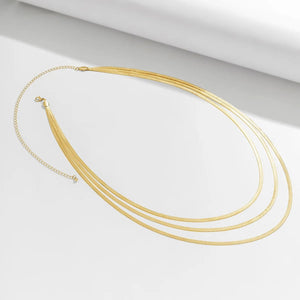 Découvrez le summum du luxe avec notre Triple Chaîne de Taille Or. Trois rangées de chaîne maille serpent dorée se fondent harmonieusement pour créer une pièce spectaculaire qui ne manquera pas de capter les regards. Portez cette chaîne de corps or pour faire une déclaration de style audacieuse et sophistiquée.