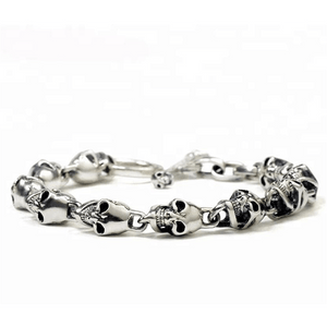 Exprimez votre audace avec notre bracelet homme crâne. Ce bracelet homme chaîne, à la fois subtil et frappant, est le choix idéal pour l'homme moderne qui souhaite affirmer sa présence et son style rock. Son design captivant en fait un symbole de force et d'individualité.