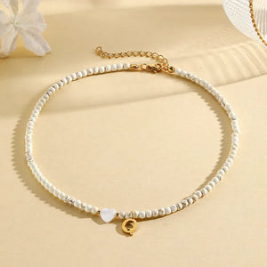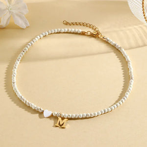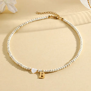 Notre Collier Lettre Perle allie finesse, modernité et symbolisme. Sa perle délicate mise en valeur par une lettre personnalisée crée un bijou unique, doux et expressif. Porté près du cou, il illumine le décolleté avec élégance et raconte subtilement une histoire, la vôtre.