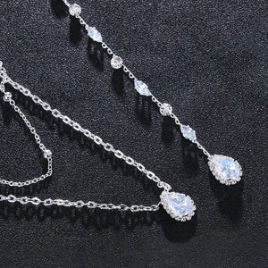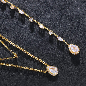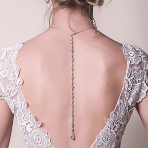 Ce bijou au reflet éclatant est le bijou de dos à avoir. Très élégant, luxueux et fin, il sera parfait à porter avec une robe dos nu pour un mariage, un gala ou une occasion spéciale. Les diamants de zirconium subliment le motif goutte et la forme du bijou, lui permettant de se coordonner parfaitement au thème du mariage. Ses motifs font directement référence aux bagues de fiançailles. Portez ce bijou radieux et éclatant pour sublimer votre beauté lors d'occasions spéciales !