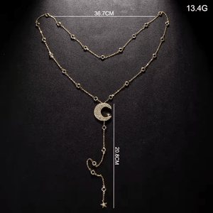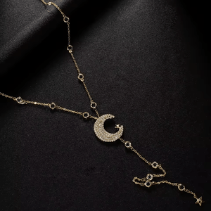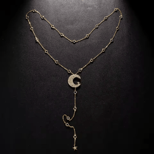 Laissez-vous envoûter par ce Collier de Dos Lune Etoile, un bijou raffiné inspiré de la beauté du ciel nocturne. Avec son pendentif en forme de lune et ses délicates étoiles scintillantes, il illumine votre dos d’une aura magique et poétique. Idéal pour sublimer une robe dos nu lors d’un mariage, d’une soirée élégante ou d’une occasion spéciale.