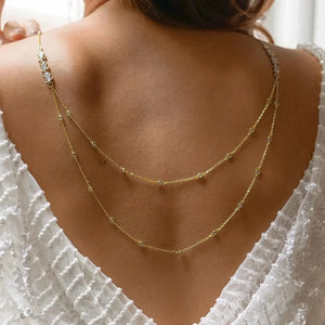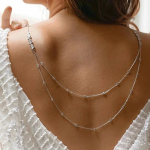 Notre Double Chaîne de Dos est un bijou délicat pensé pour sublimer vos robes et tenues dos-nu. Avec ses deux rangs qui se déploient le long du dos, elle crée un effet raffiné et sensuel, parfait pour attirer les regards avec subtilité. Idéale pour les mariages, les soirées élégantes ou les occasions spéciales, elle incarne l’élégance contemporaine.