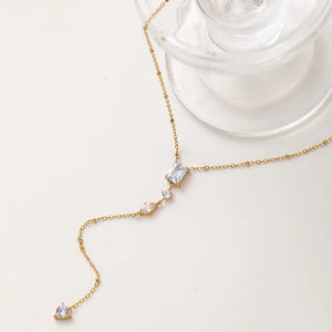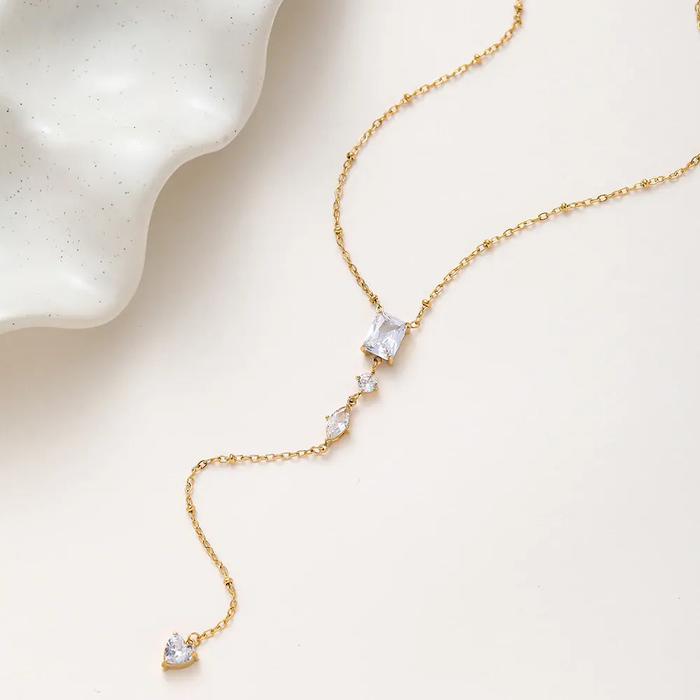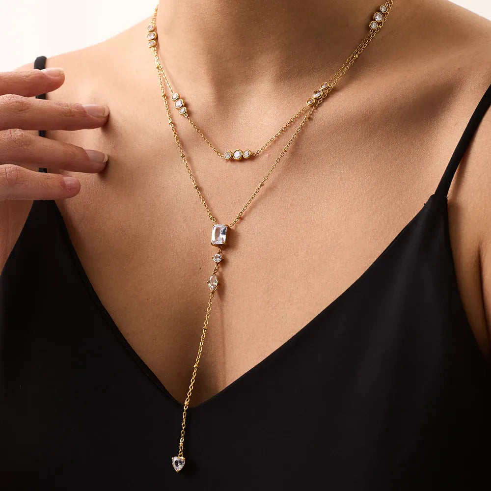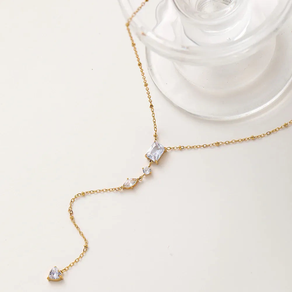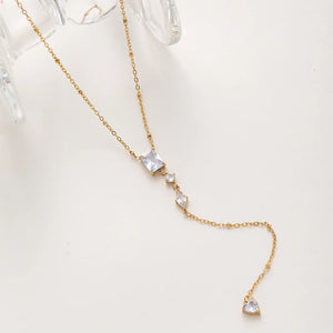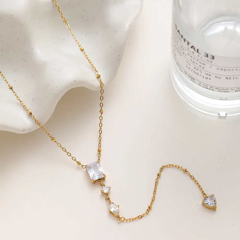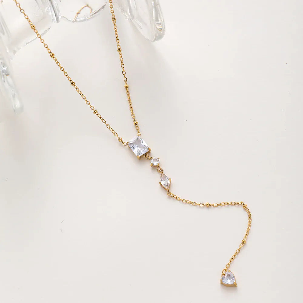 Apportez une touche de modernité à votre style avec ce Sautoir Femme Or en forme de Y, sublimé par un pendentif géométrique en zircon scintillant. Son design structuré et contemporain attire immédiatement le regard, tandis que sa ligne en Y allonge le décolleté avec finesse. Parfait pour un look chic, sophistiqué et légèrement audacieux.