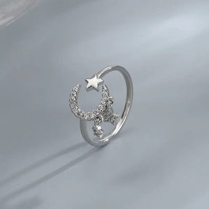 Plongez dans la beauté des nuits étoilées avec notre Bague Chaine Lune Etoiles. Une bague à la conception exquise qui capture l'éclat de la lune et la brillance des étoiles, conçue pour illuminer chaque instant. Offrez-vous ce magnifique bijou chaîne et expimez votre style personnel.