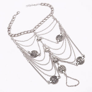 Vous souhaitez mettre votre cheville en valeur cet été ? Notre bijou de pied chaîne indienne est parfaite pour vous. Ce modèle est agrémenté de jolis médaillons en forme de pièces de monnaie antiques et typiques, qui lui donnent un look bohème et typique très en vogue.