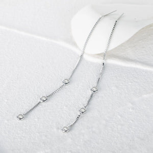 La boucle d'oreille chaine traversante diamant est fabriquée en argent 925 et est disponible dans deux couleurs or ou argent. Son diamant scintillant rend le bijou spécial et luxueux à la fois.