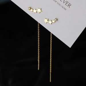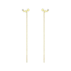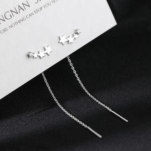 Très douce et fine, cette boucle d'oreille pendante étoile sera parfaite pour mettre en valeur votre oreille, lobe et cou. La finesse de la chaîne de cette paire de boucle d'oreille montante fantaisie est délicate et féminine. Constituée d'étoiles et d'un diamant de zirconium, c'est une très belle boucle d'oreille chaîne à avoir dans sa collection.