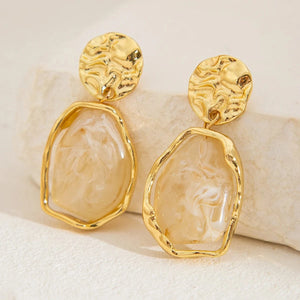 Notre Boucle d'Oreille Pendante Or Pierre marie avec élégance la chaleur de l’or à la pureté naturelle de la pierre. Chaque paire est une œuvre d’art où la lumière dorée se mêle aux reflets uniques des pierres semi-précieuses, créant un équilibre parfait entre éclat et authenticité.