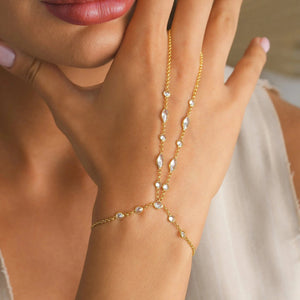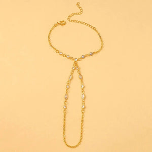 Le Bracelet de Main Zircon est un bijou raffiné qui relie poignet et doigt à travers une chaîne délicate ornée de zircons scintillants. Brillant de mille feux, il illumine vos gestes et apporte une touche glamour à vos tenues, idéal pour un mariage, une soirée élégante ou un événement spécial.