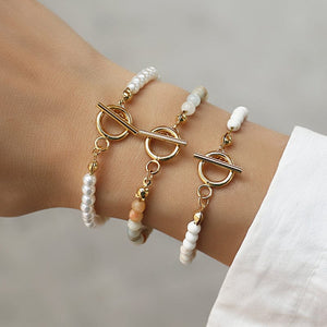 Sublimez votre poignet avec nos bracelets à fermoir T et perles. Ces bijoux sophistiqués allient l'éclat des perles à l'élégance d'un fermoir en T, créant un look à la fois moderne et intemporel. C'est le bijou parfait pour les femmes qui apprécient la finesse et l'originalité.