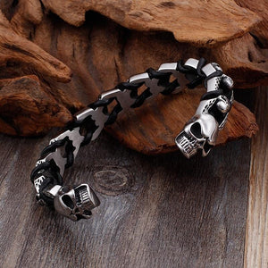 Imposez votre style avec notre Bracelet ouvert homme tête de mort arborant un style rock et incontournable. Audacieux et branché, ce bracelet chaîne unique est une représentation artistique des tendances actuelles. Fabriqué avec la plus grande précision, il met en lumière l'expression d'un goût excentrique et une audace indéniable.
