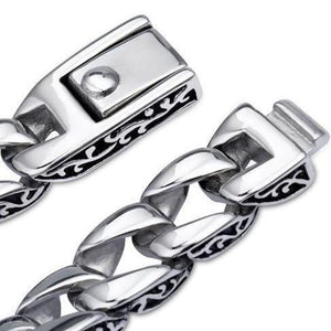 Les nombreux détails composant ce bijou de poignet rendent la chaîne luxueuse et de très bonne qualité. C'est le bijou parfait à porter au quotidien pour exprimer un côté viril et mystique.