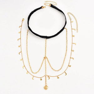 Cette très jolie chaine de cuisse fantaisie apportera une touche de douceur et d'originalité à vos jambes. Composé de chaînes en or et de breloques cœurs, lunes et étoiles, ce bijou est romantique et charmant. Il ira parfaitement avec vos tenues d'été, vous permettant d'exprimer votre beauté intérieure.