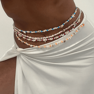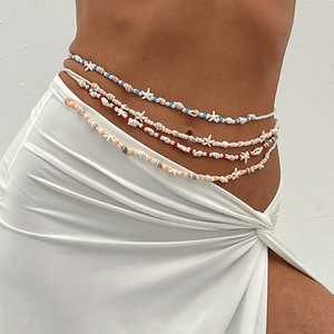 Offrez à votre silhouette une touche de délicatesse avec notre Chaine de Taille Perles, un bijou de ventre raffiné qui allie perles délicates et pendentifs estivaux. Chaque perle et pendentif, minutieusement sélectionnés, danseront autour de votre taille pour sublimer vos courbes avec légèreté et élégance.