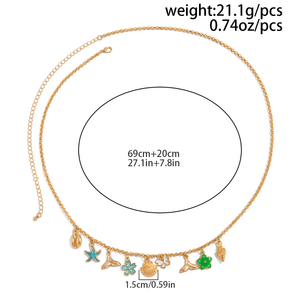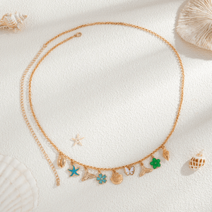 Découvrez notre Chaine de ventre Coloree, parfaite à porter cet été ! Ornée de multiples pendentifs colorés inspirés de la mer, coquillages, étoiles de mer, cette chaîne de corps captera la lumière et révèle toute votre féminité. Parfaite pour accessoiriser vos looks d’été, que ce soit sur un bikini, une robe fluide ou un short taille basse.