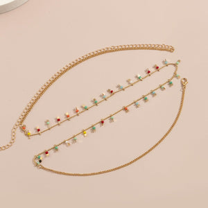 Très tendance, cette chaine de ventre étoile sera parfaite à porter cet été au bord de la plage ou d'une piscine. Sa finition fine et colorée vous permettra de mettre en valeur votre corps et votre féminité. Disponible en or et en argent, laissez-vous tenter par ce magnifique bijou de corps.