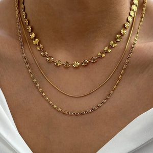 La Triple Chaîne Or est l’accessoire idéal pour celles qui veulent adopter le style superposé sans effort. Composée de trois rangs délicatement dorés, ce collier chaîne crée un effet sophistiqué et tendance qui habille instantanément le cou. Que vous le portiez seul pour un look affirmé ou associé à d’autres bijoux, il apporte une touche chic et contemporaine à toutes vos tenues.